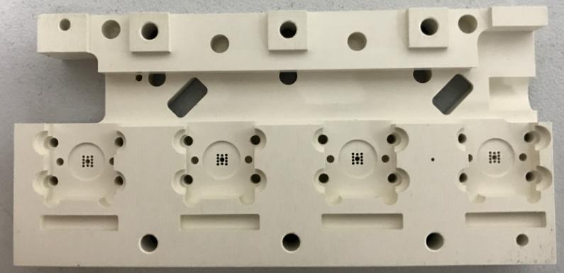 產(chǎn)品名:基座 材料:OFC 主要工藝:CNC 技術(shù)難點(diǎn): --光通信產(chǎn)品關(guān)鍵部件 | 產(chǎn)品名:針板-05 材料:TekaPEEK CMF 主要工藝:CNC、鉗工 技術(shù)難點(diǎn): --微孔直徑公差;0.01mm --顯微鏡30倍檢測(cè)無毛刺 | 產(chǎn)品名:針板-08 材料:TekaPEEK CMF 主要工藝:CNC、鉗工 技術(shù)難點(diǎn): --微孔直徑公差;0.01mm --顯微鏡30倍檢測(cè)無毛刺 |