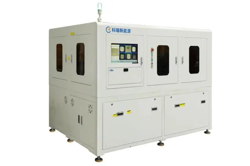 激光模切分條一體機主要應用于極片極耳成型與極片分條,制成品可供應疊片設(shè)備與卷繞設(shè)備。采用激光高速切割技術(shù),搭配獨立自適應除塵系統(tǒng)與排廢料系統(tǒng),在獨立空間內(nèi)進行極耳切割;通過收放卷裝置、牽引裝置與張力控制裝置實時聯(lián)動,控制極片穩(wěn)定高速傳輸,通過五金刀模進行極片分條,并采用高速相機自動識別切割質(zhì)量、尺寸精度與來料異常,及時排除品質(zhì)不良,保證產(chǎn)品質(zhì)量安全。